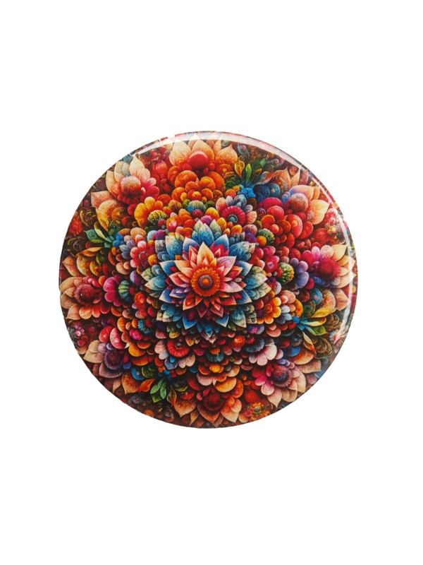 Bedz veličine 58 mm - mandala od cvetova - bedz može biti personalizovan - dodati se ime i sl.